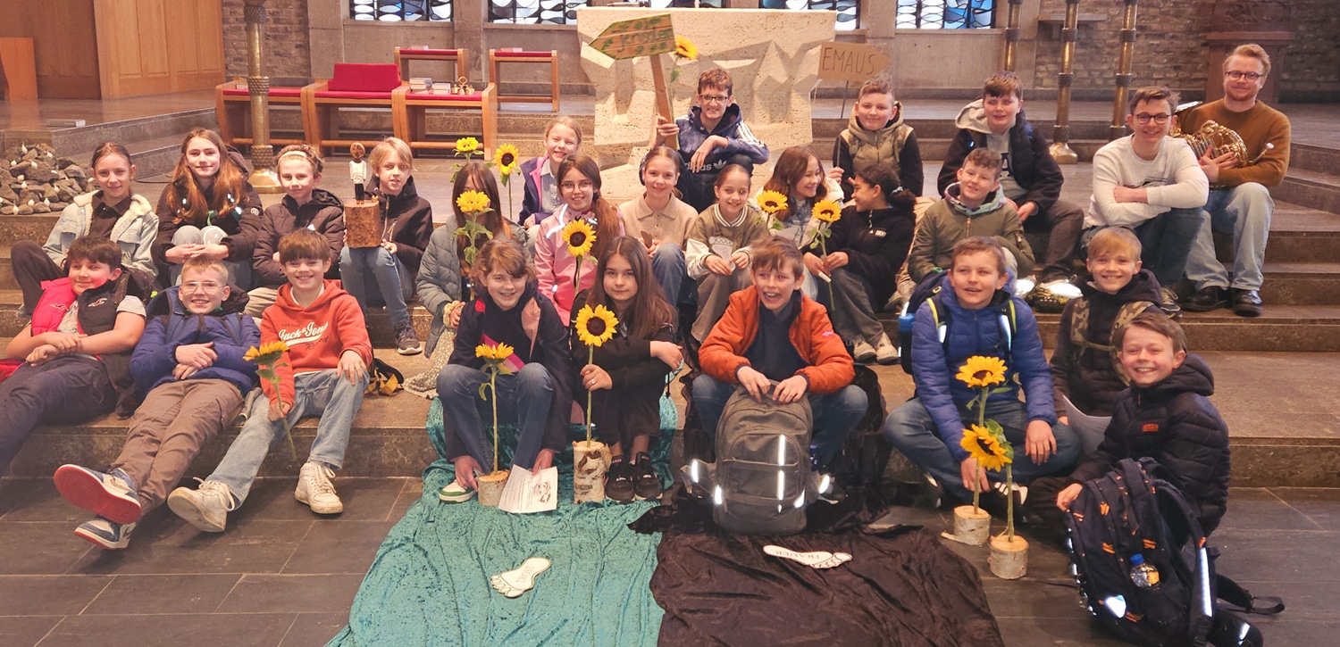 „Spuren der Hoffnung auf dem Weg – mit den Emmaus-Jüngern auf dem Weg“ Ostergottesdienst der Jahrgangsstufe 5 (22. 3. 2024)